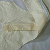 She had asked me for help in fine tuning the sewing patterns she was using. While she was using a separate strip of fabric to create this "button opening," I was intrigued to see if it could be cut in one with the body of the garment.
